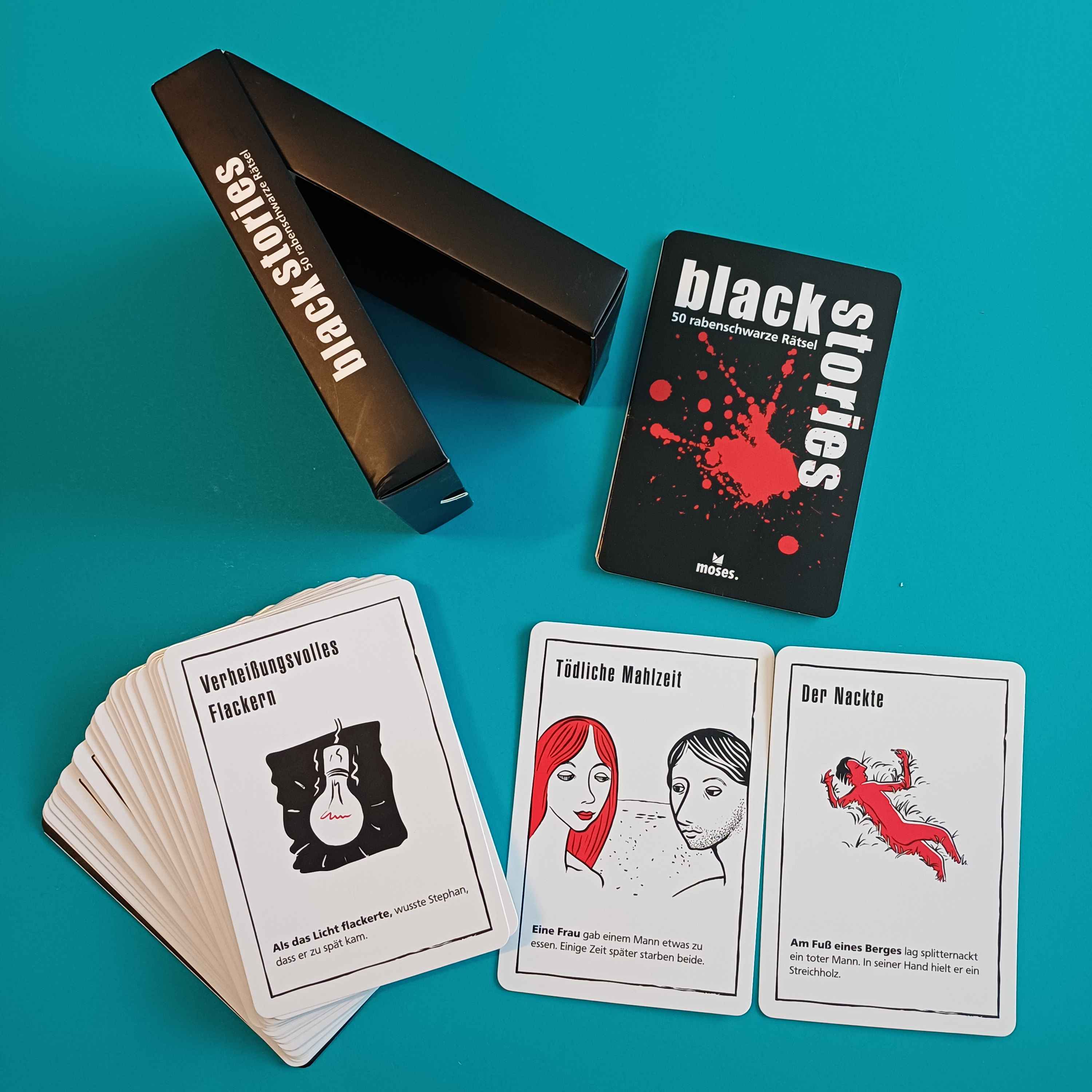 Makabre Rätselgeschichten zum Knobeln und Mitraten: In Black Stories gilt es, durch geschicktes Fragen die Hintergründe mysteriöser und oft düsterer Fälle zu entschlüsseln.