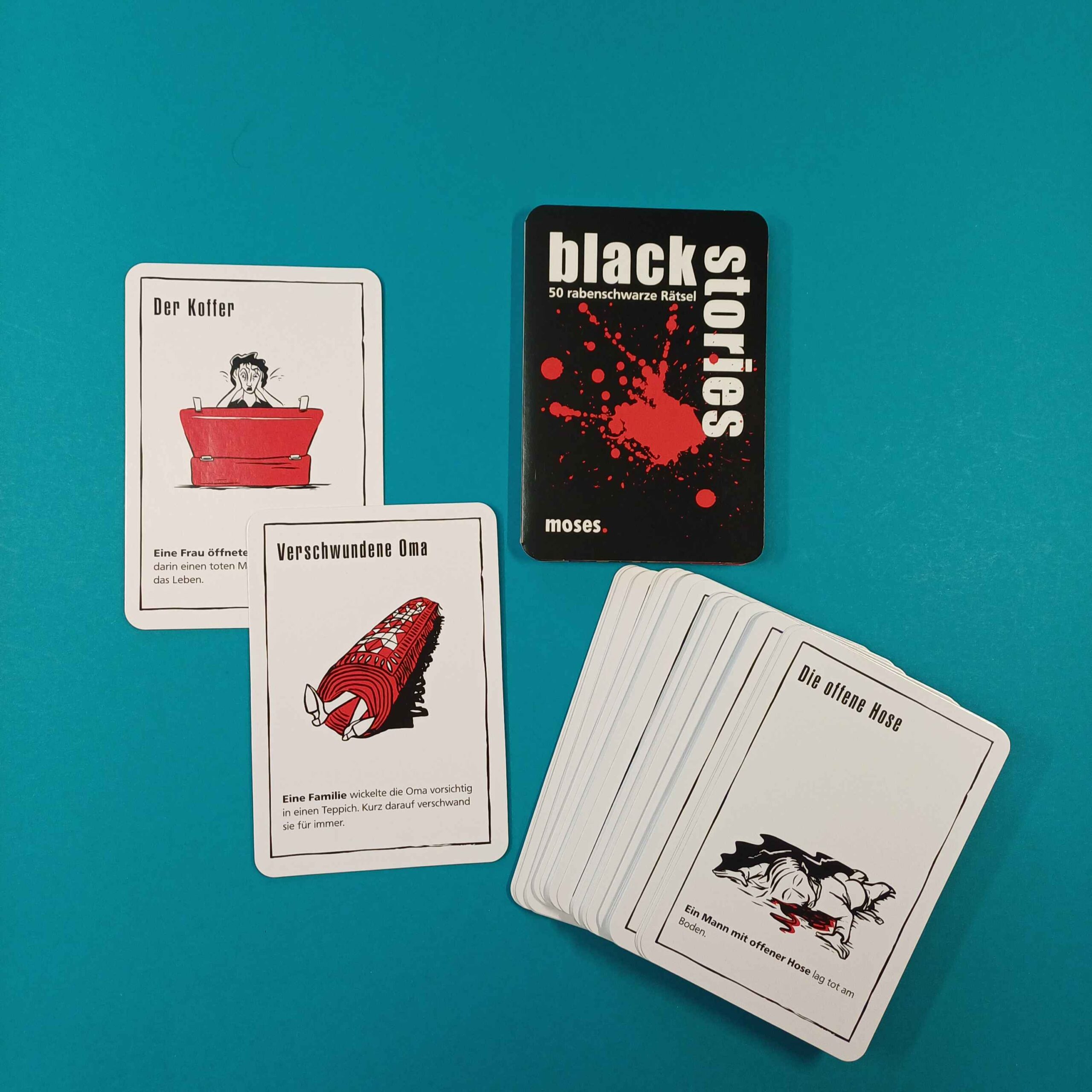 Makabre Rätselgeschichten zum Knobeln und Mitraten: In Black Stories gilt es, durch geschicktes Fragen die Hintergründe mysteriöser und oft düsterer Fälle zu entschlüsseln.