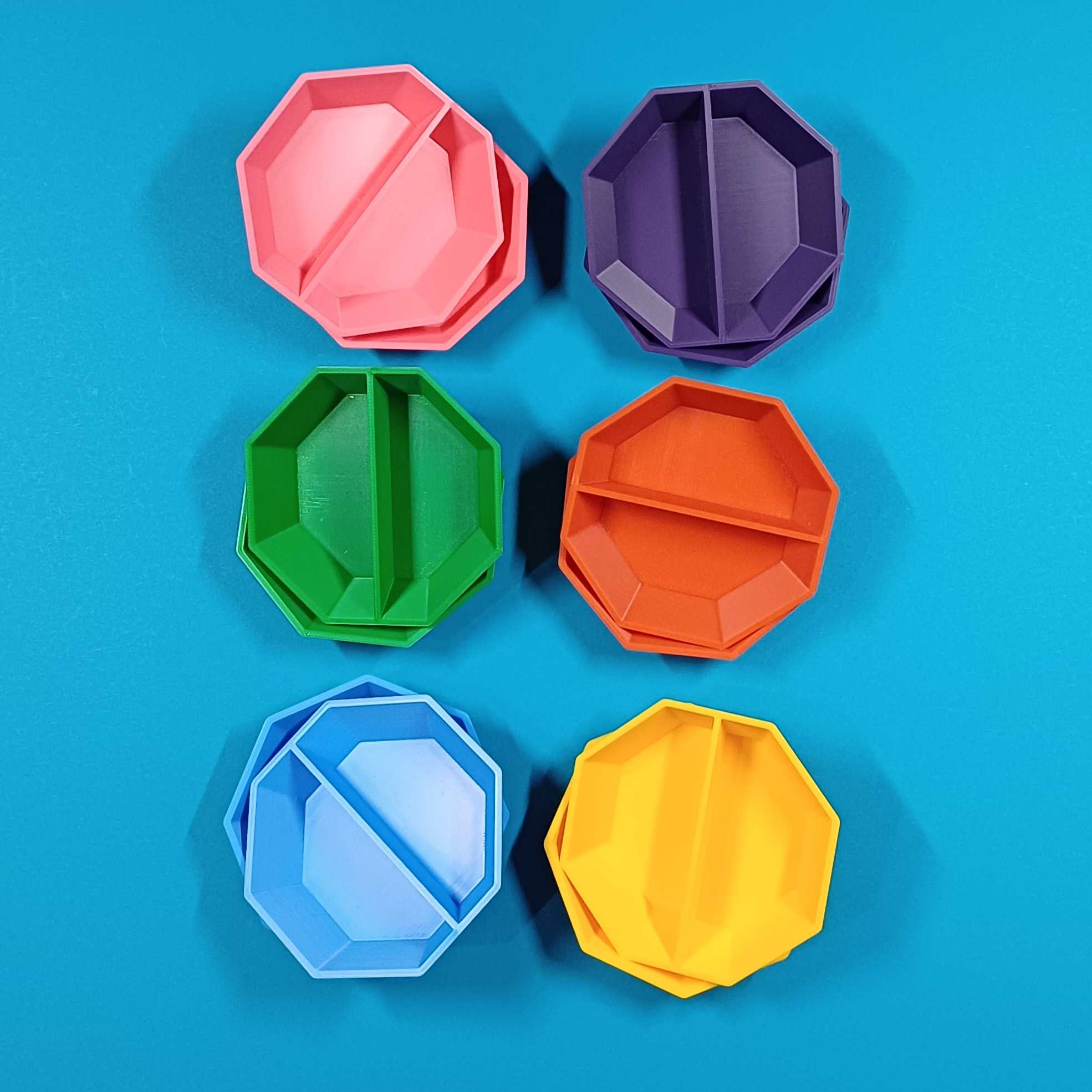 Diese praktischen Token-Schälchen sind die ideale Ergänzung für jeden Spieleabend. Ob Marker, Münzen, Ressourcen oder Würfel – alles bleibt ordentlich sortiert und griffbereit auf dem Tisch.