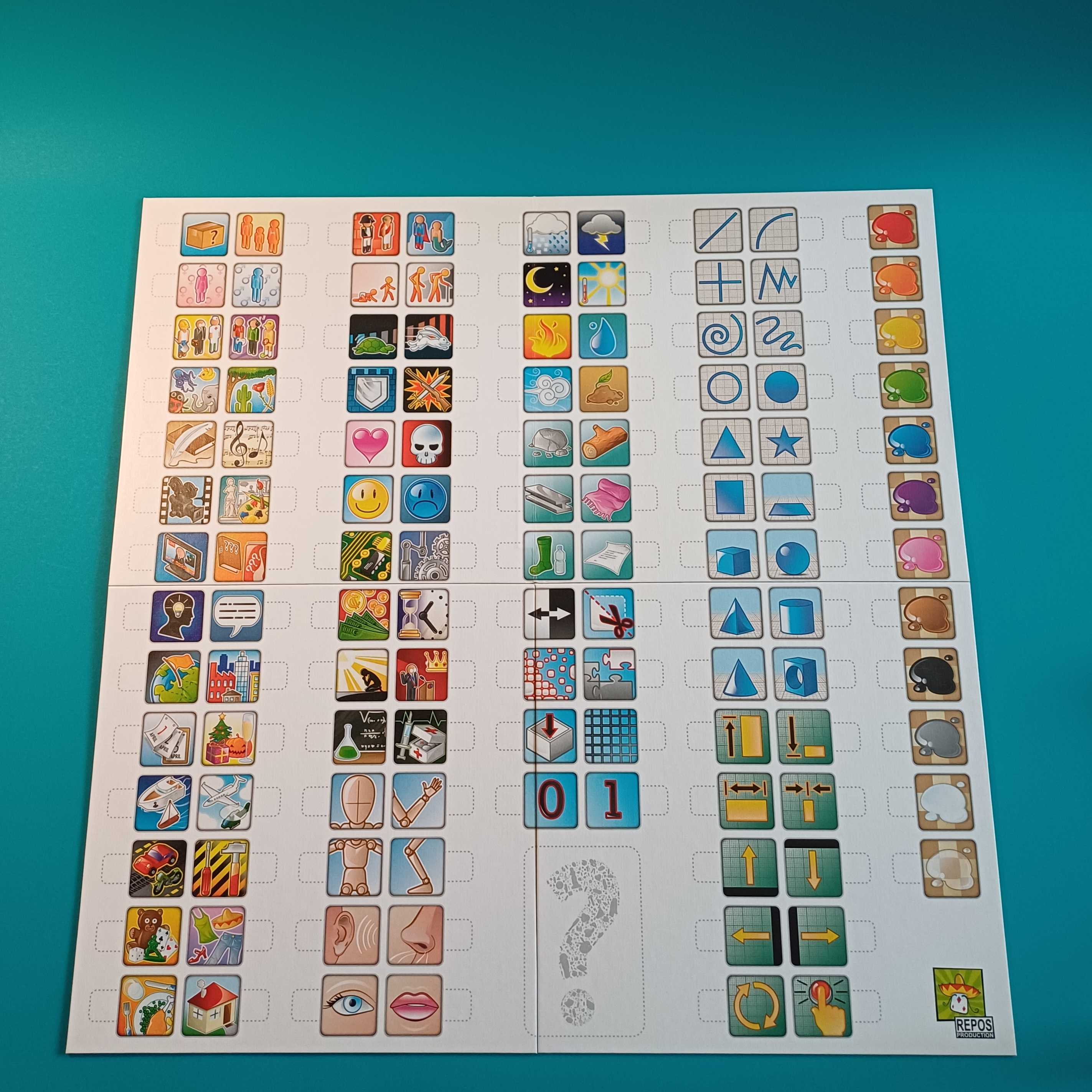 Ein Team wählt einen Begriff und stellt ihn ausschließlich über Symbole auf dem Spielbrett dar.