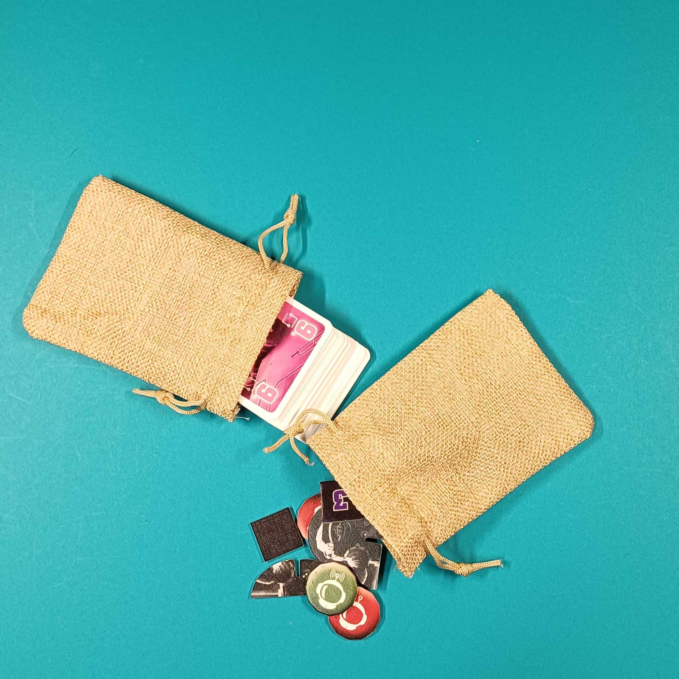 🎲 Komponenten: sehr guter Zustand; inkl. 2 von uns ergänzten Jutebeuteln zur Aufbewahrung