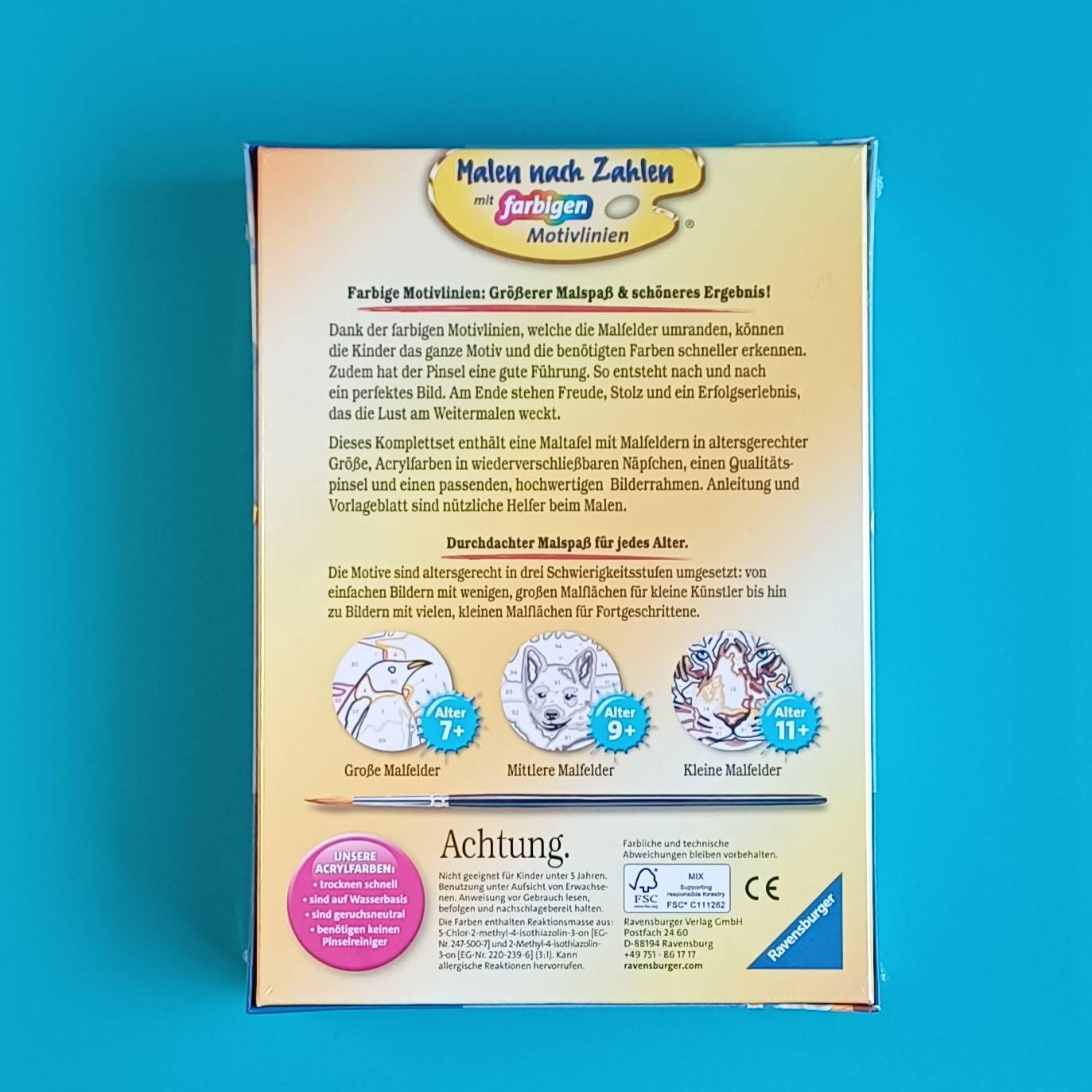 Dank der nummerierten Felder und fertigen Farben gelingt das Motiv ganz einfach und sorgt für ein echtes Erfolgserlebnis. Nebenbei werden Konzentration und Feinmotorik spielerisch gefördert.