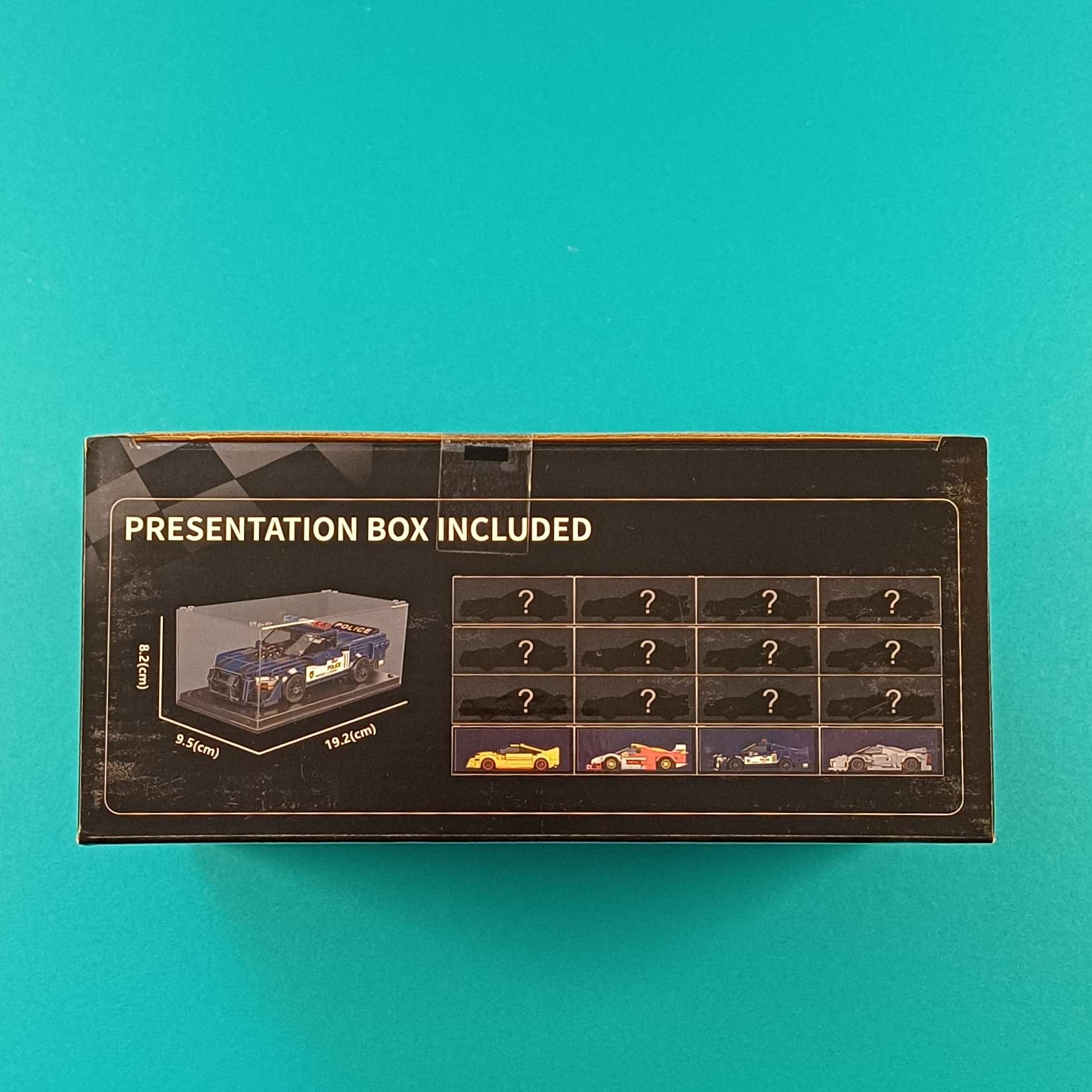 Detailreiches Klemmbaustein-Modell eines Shelby GT500 Polizeiautos mit 481 Teilen und Präsentationsbox – ideal für Sammler.