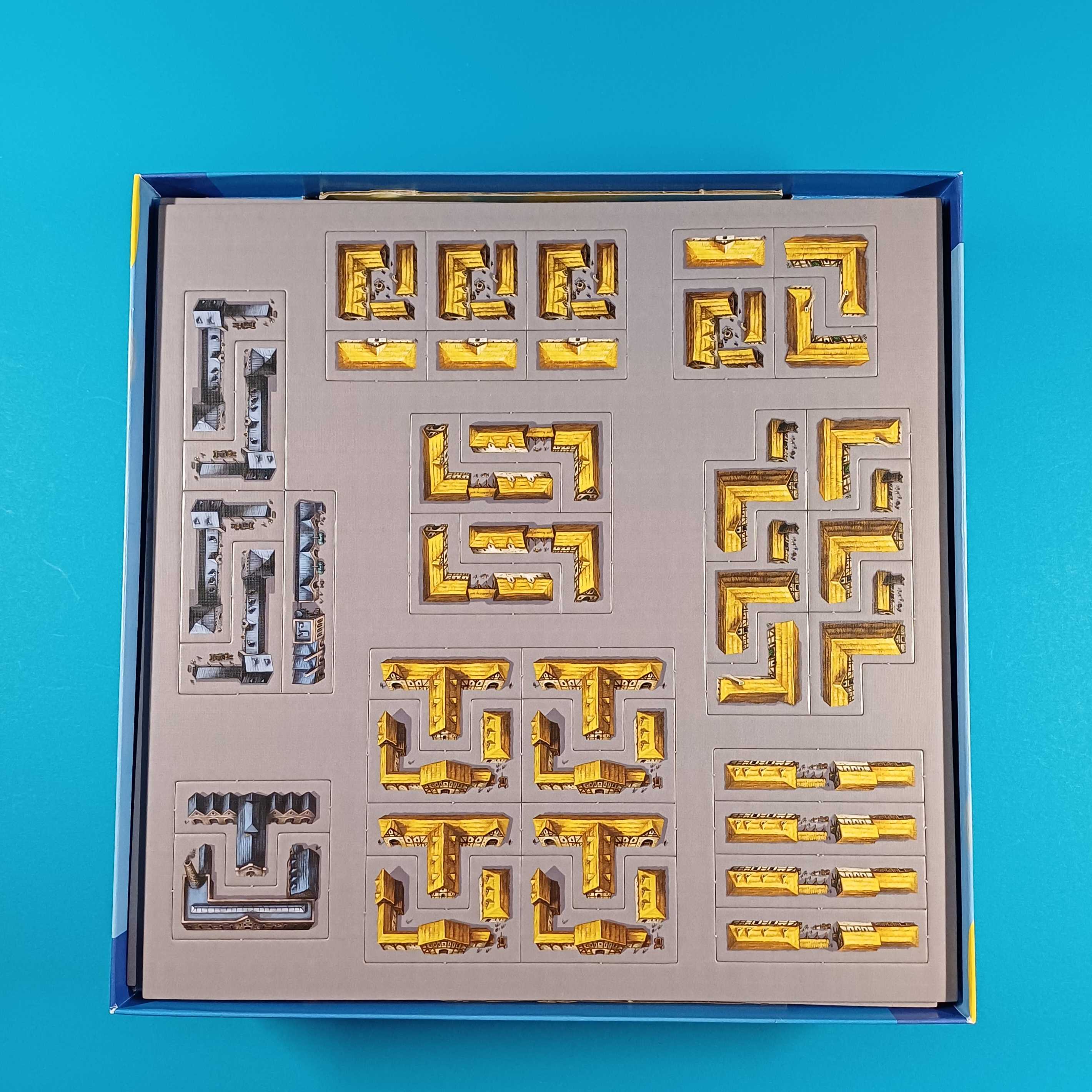 Die Spieler bauen ihre eigene Stadt, indem sie Gebäudeplättchen strategisch auf ihrem Spielplan platzieren.