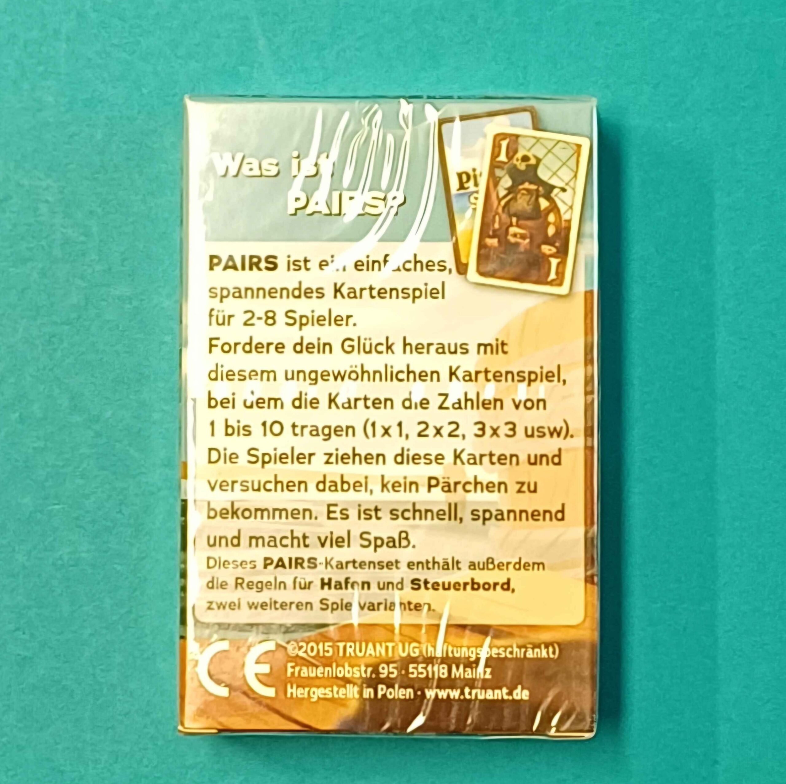 Pairs – Piraten ist ein schnelles Kartenspiel, bei dem Risiko und Timing entscheidend sind. Perfekt für kurze, spannende Spielrunden – ideal auch als kleines Geschenk.