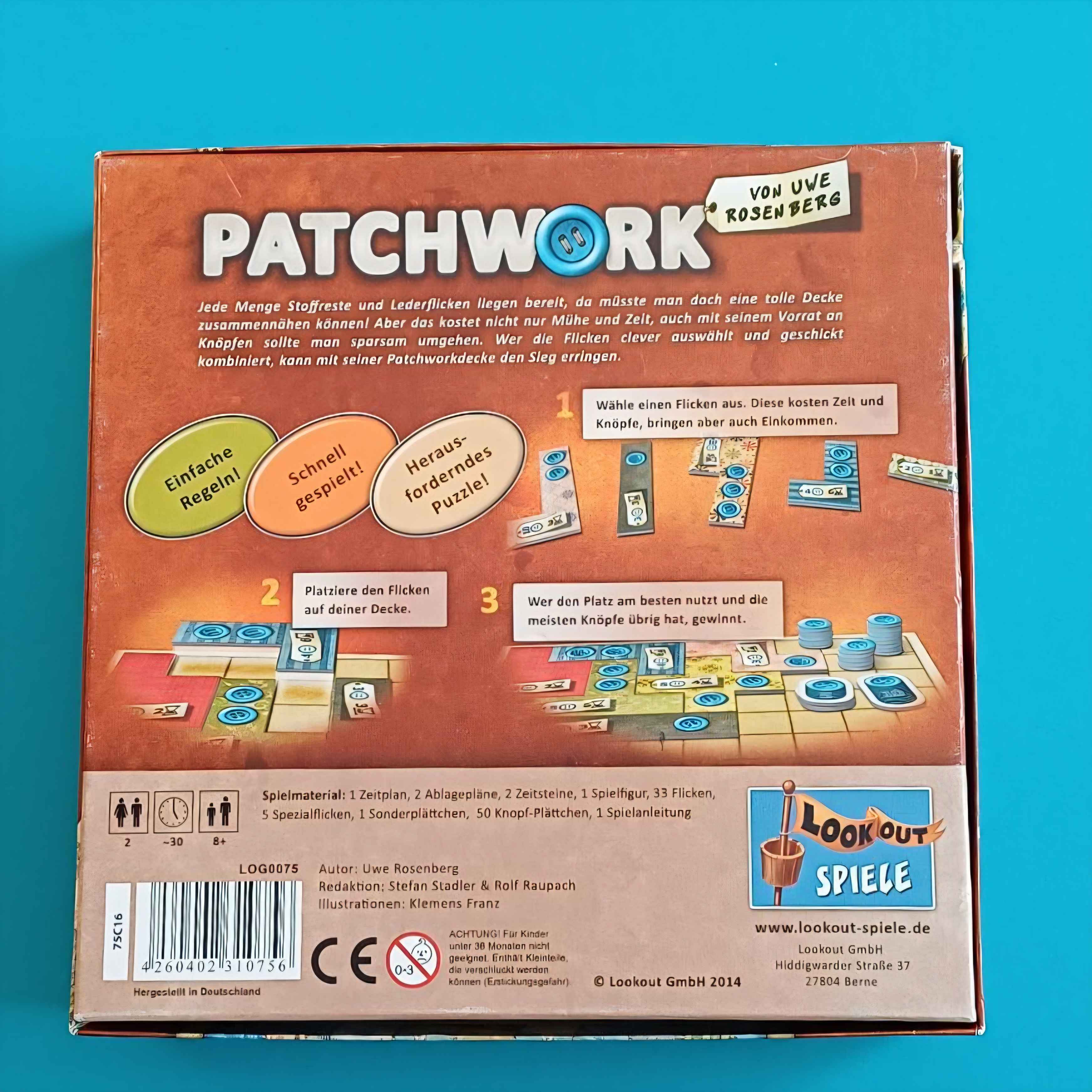 Ein taktisches 2-Personen-Spiel, bei dem du aus Stoffflicken deine eigene Patchwork-Decke zusammenstellst. Plane geschickt, verwalte deine Knöpfe als Währung und nutze die Zeitleiste optimal.