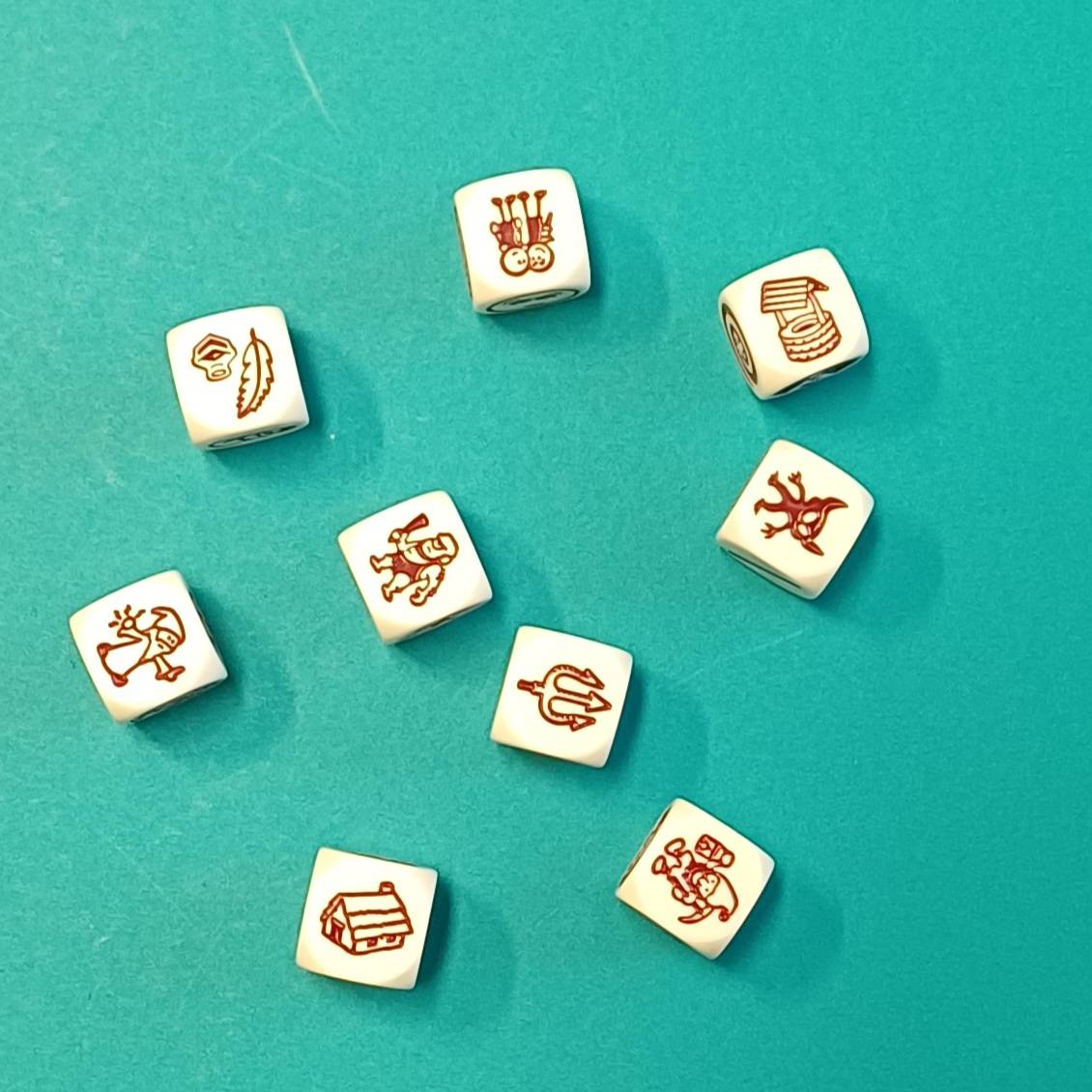 Die Würfel zeigen verschiedene Symbole.