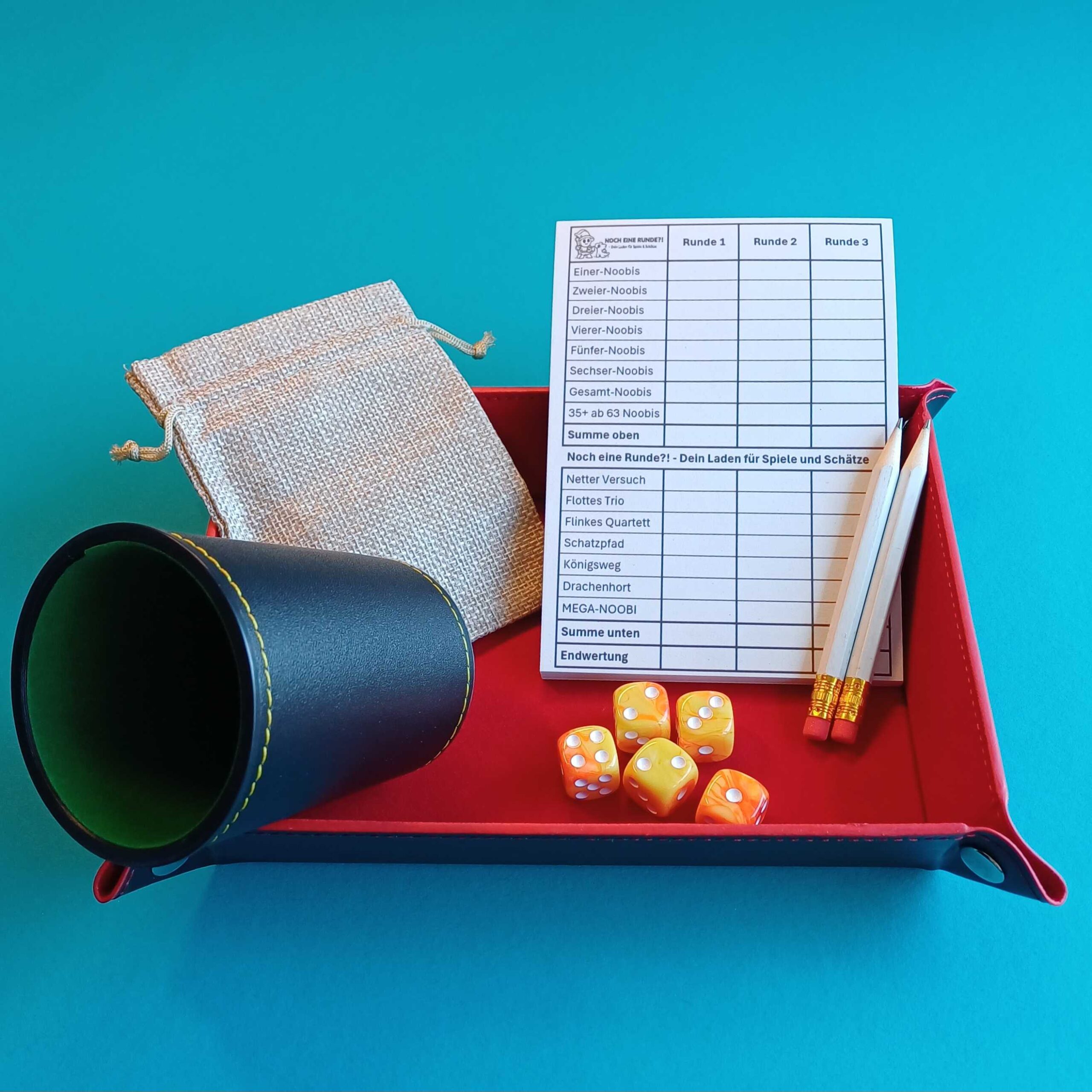 Dieses umfangreiche Set kombiniert den Noobi-Würfelglück Block (eigene Produktion) mit hochwertigem Zubehör für maximalen Spielkomfort.